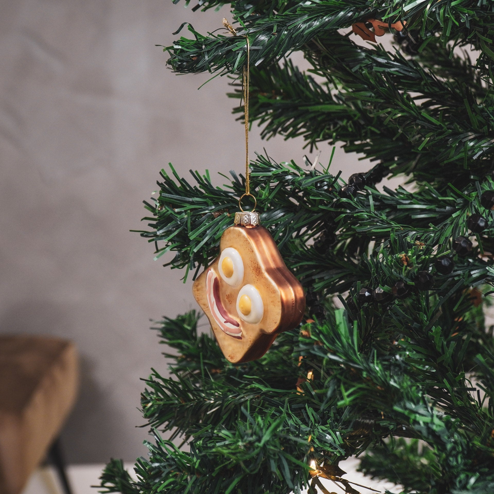 Kersthanger - Broodje Ei - Glas - Bruin - 6,5x6,5x2,5cm