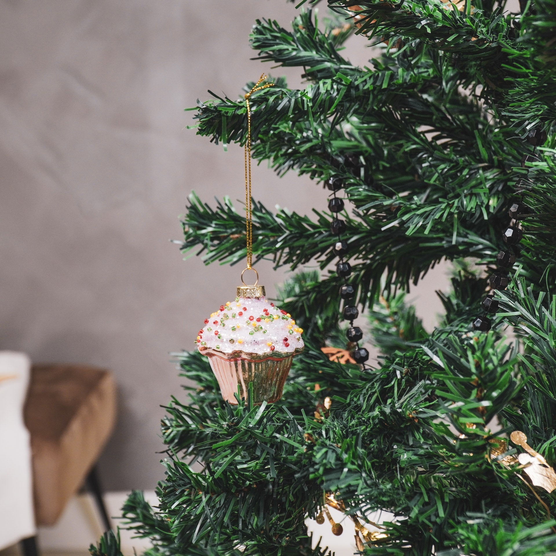 Kersthanger - Cupcake - Glas - Roze - 6x6,5cm