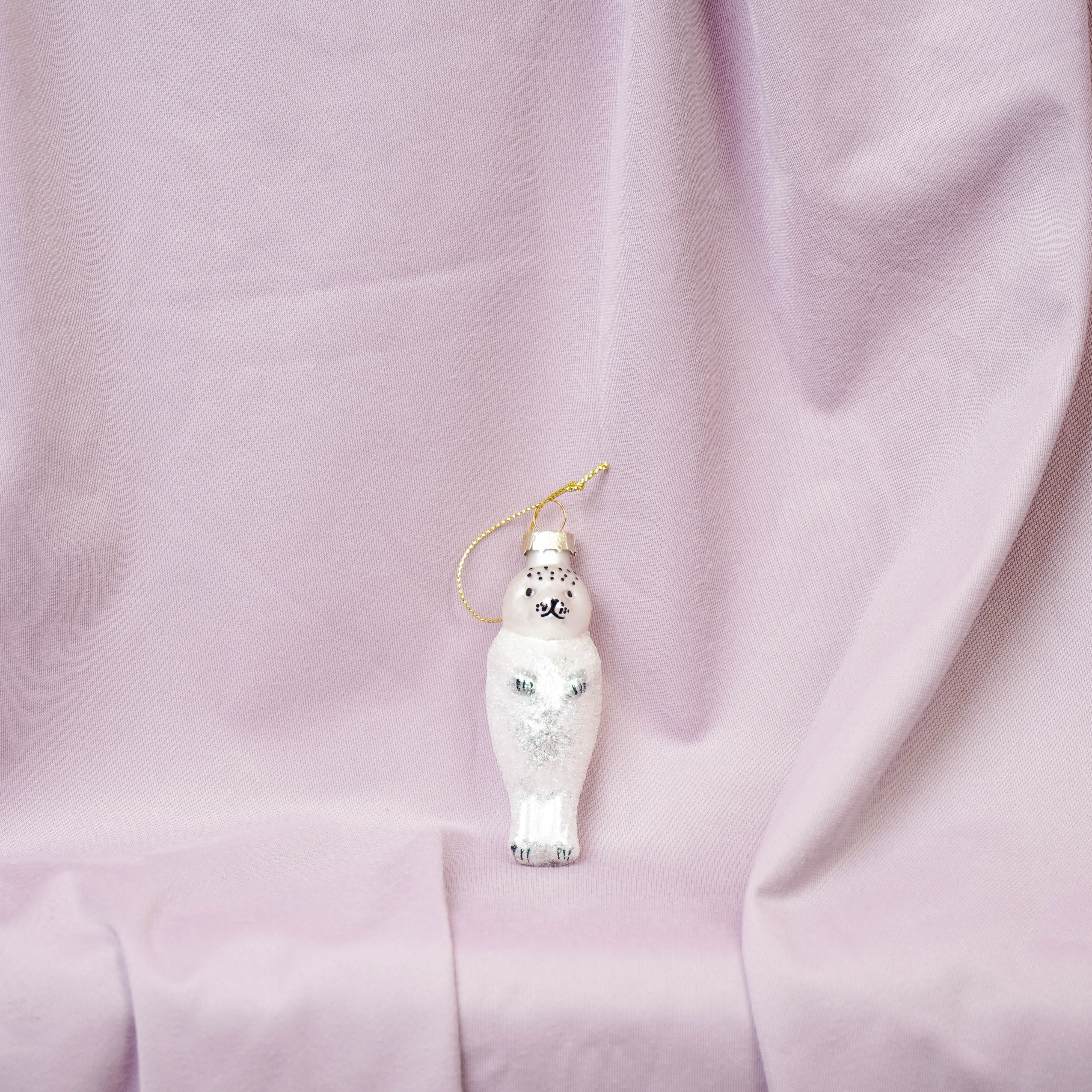 Kerstversiering - Kersthanger - Zeehond - Glas - Wit - 3,5x3,5x9,5cm