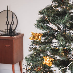 Styling tip: Je kunt de mooie gouden JOY kerstballen ook aan een tak boven jouw eettafel hangen. En versier eens een staande tak met glazen kerstwoorden: styling mogelijkheden genoeg!