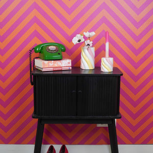 Maak het geheel extra vrolijk door de vaas te vullen met bloemen in pastelkleuren, zoals pioenrozen, tulpen of ranonkels. Combineer de vaas met andere kleurrijke accessoires of zet hem op een dienblad met (nep)snoepjes voor een onweerstaanbaar zoet hoekje. Zo wordt deze kabel spek vaas hét stralende middelpunt van je kamer!