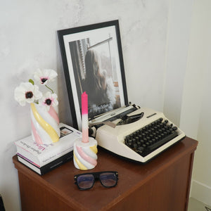 Vaas - Bloemenvaas Kabel Spek - Dolomiet - Geel/Roze - 10x10x15cm