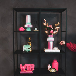 Styling tip: Zonder bloemen staat deze vaas met groene en roze strepen ook prachtig, dus zoek maar gewoon een mooi plekje uit.