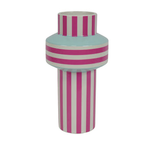 Vaas - Bretonse Streep - Keramiek - Mintgroen/Roze - 13x13x25cm