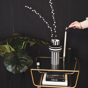 VASE IT! Vazen heb je nooit genoeg en zeker niet in deze mooie vorm. Deze gestreepte zwart wit vaas is in de art deco stijl en geeft jouw interieur een Frans tintje!! Zoek je een vrolijke vaas met een bijzondere vorm, zoek niet verder!