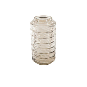 Vaas- Hoge Bloemenvaas- Relief- Glas- Bruin- 12,5x23cm