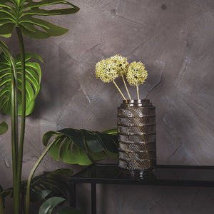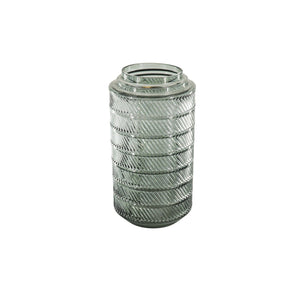 Vaas- Hoge Bloemenvaas- Relief- Glas- Grijs- 12,5x23cm