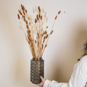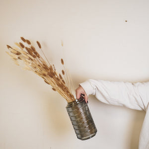 VAZEN HEB JE NOOIT GENOEG! Op zoek naar de perfecte bloemenvaas om je boeket tot leven te brengen? Deze prachtige smokey glazen vaas met reliëf van Housevitamin is precies wat je nodig hebt. Gemaakt van hoogwaardig glas en met een afmeting van 12,5x23cm, is deze vaas een echte eyecatcher in jouw interieur.